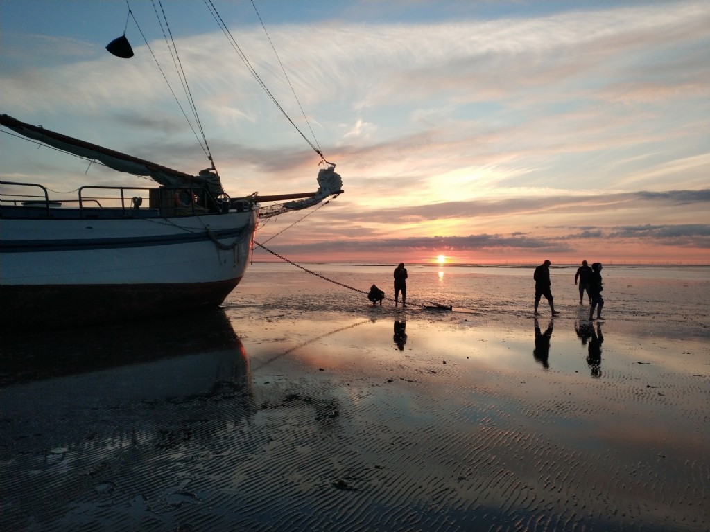 Bei längeren Törns segeln wir bei geeigneten Wetterbedingungen aufs Wattenmeer und machen auf einer der Inseln fest.