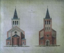 Im Dezember 1852- nach einer inspirierenden Italienreise – hat er die Bauzeichnung fertig. Der Kirchenvorstand nimmt die Pläne begeistert auf. Wieder kommt ein Dämpfer. Der endgültige Kostenanschlag für die komplette Kirche wiest einen Betrag von 17.790 Rth. aus. Das ist zuviel! Eine Gemeindeversammlung soll entscheiden, ob die Christen in den drei Dörfern diese Summe aufbringen können und wollen. Das Ergebnis war negativ.