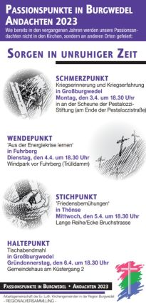 Thönse, 18:30 Uhr, Passionsandacht (Dorfgemeinschaftshaus), Pastorin Kruckemeyer-Zettel